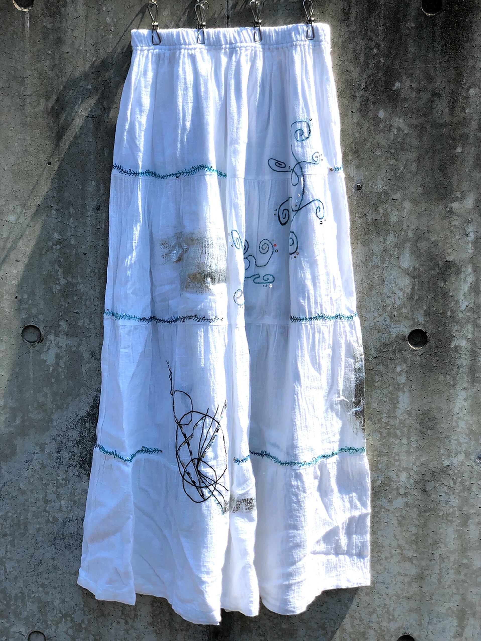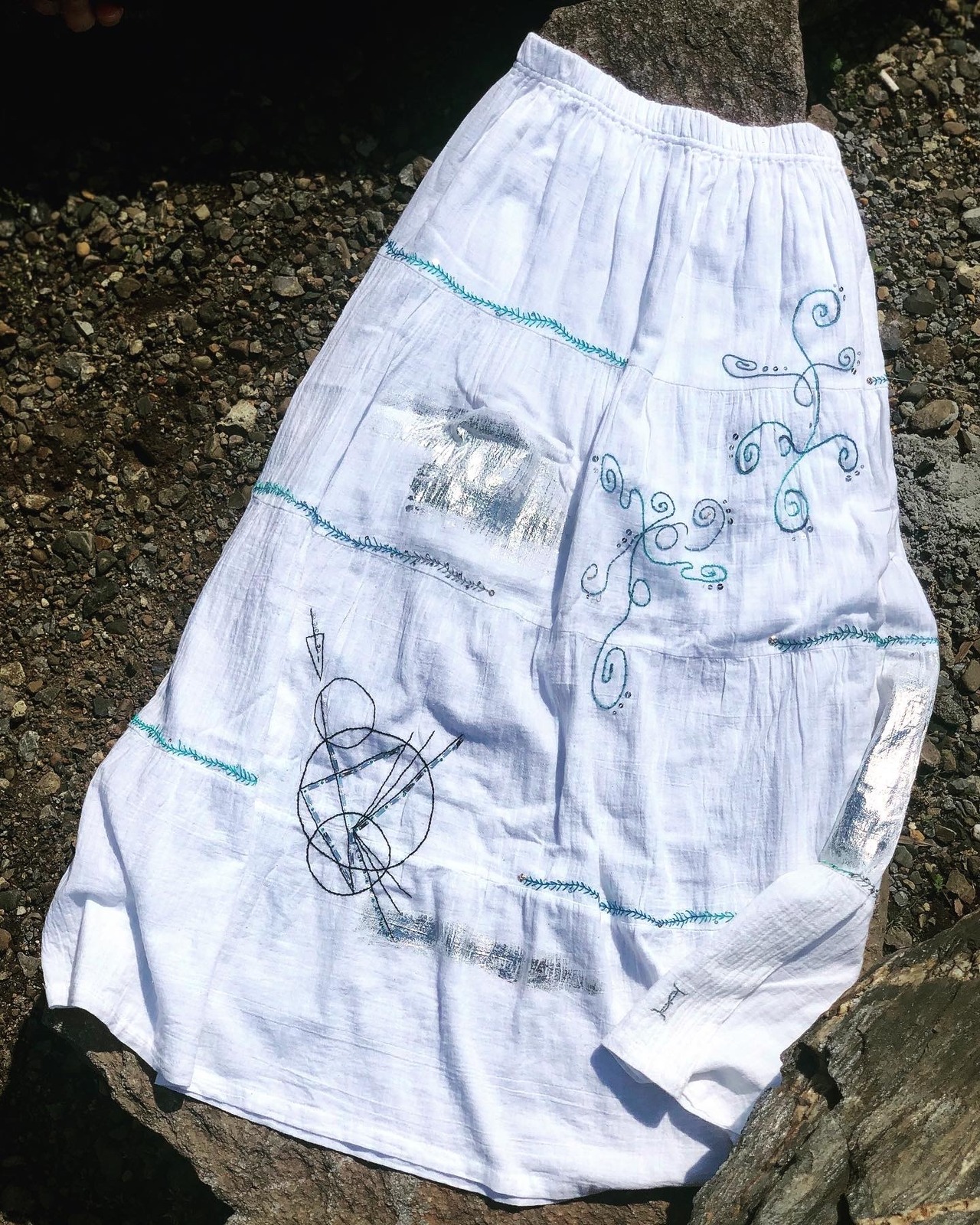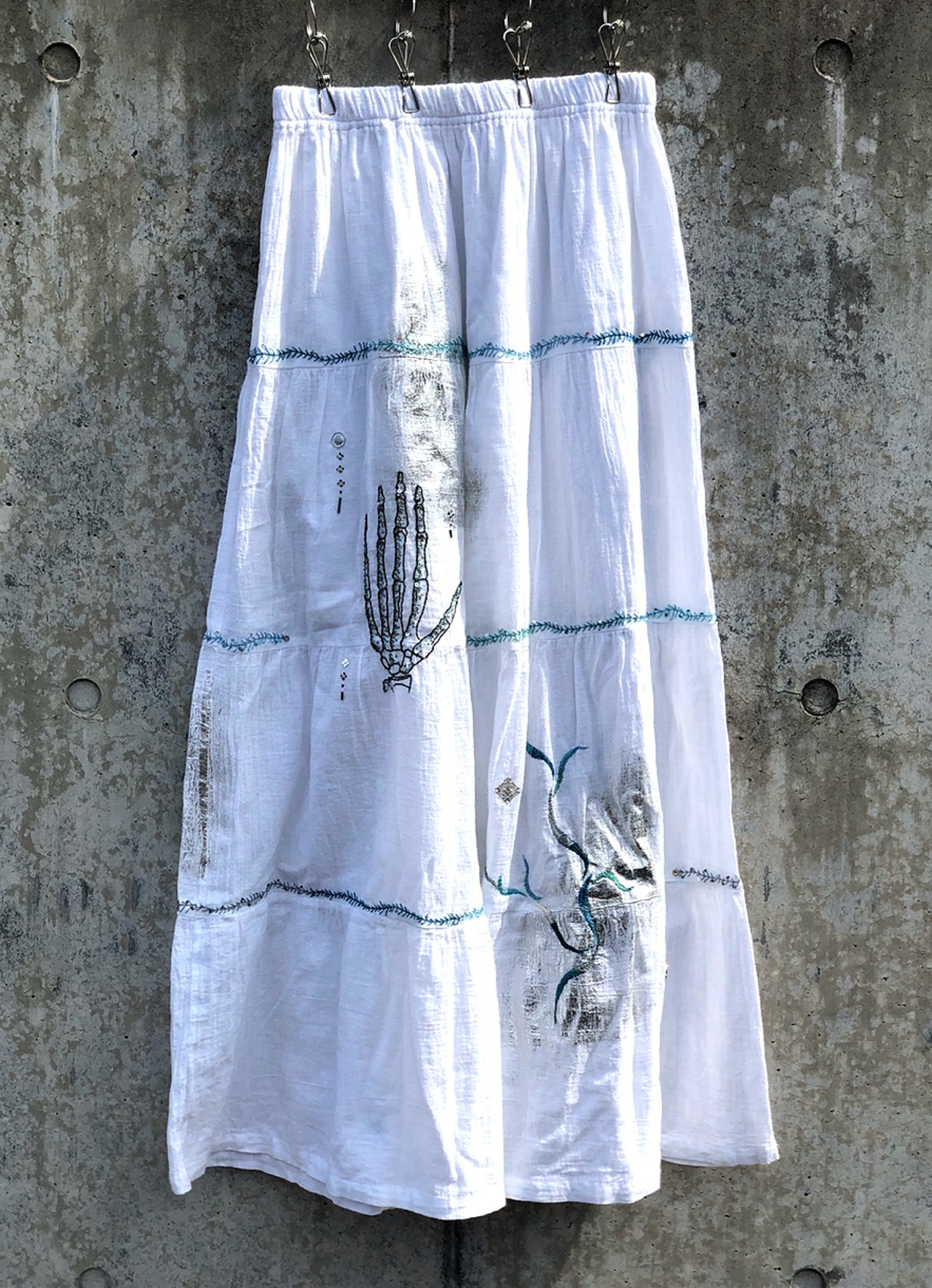 タイで仕入れた服に所々銀箔を貼りつけ、